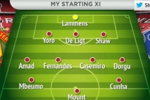 记者Jack Flintham:拉门斯;卢克·肖、德里赫特、约罗;多尔古、卡塞米罗、B费、马兹拉维;芒特、阿玛德、姆伯莫