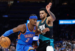 值得一提的是,如今这支所向披靡、战无不克的雷霆,甚至还不是完全体——上赛季球队的二当家杰伦-威廉姆斯仍然因为身处手腕手术的恢复期,而没有回归赛场。上赛季,雷霆在没有杰威的情况下,交出了13胜0负的成绩单,本赛季的表现也不遑多让,真是恐怖如斯。事实上,雷霆管理层甚至还有可能会对杰威的缺席而暗自窃喜,因为他已经缺席18场常规赛,自动失去了个人奖项的评选资格(因为出勤率不达标),从而使他的顶薪合同锁定为普通顶薪,省下了差不多4800万元。反正其他球队也不够打,倒不如让球队的开支开源节流一番。