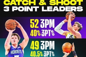 马尔卡宁52记三分居首,命中率40%;克尼佩尔49记第2,命中率40.5%;罗伊斯·奥尼尔43记第3,命中率41.3%;克里斯蒂42记第4,命中率40%。