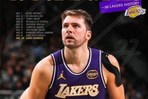 生涯能排在哪里?湖人发布东契奇40+场次升至队史前十海报