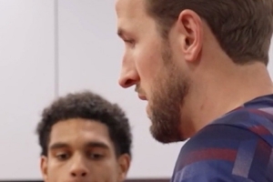 依照传统,赛后英格兰队长凯恩在更衣室里为宽萨颁发纪念帽子,祝贺他完成国家队首秀。