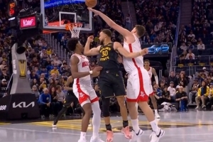 GIF-库里不看人脑后分球,理查德后仰压哨中投!