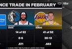 在大交易之后,浓眉52场比赛只打了14场——8胜6负;东契奇则是52场出战41场,战绩是28胜13负!
