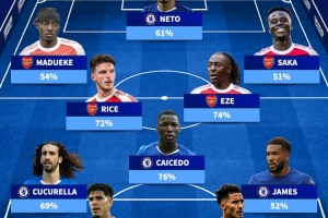 前锋:马杜埃凯(阿森纳)、内托(切尔西)、萨卡(阿森纳)
