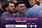 英超第13轮,曼城主场对阵利兹联,开场第1分钟福登破门为曼城取得领先,据统计,这是本赛季英超最快进球,也是首粒在开场第1分钟打入的进球。