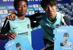 英超每年都会在11月11日左右举办第一次世界大战停战的活动。11月27日,布莱顿俱乐部组织青年球员参加这项活动,三笘薰与一位日裔的黑人小球员一起合影。
