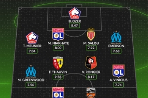 whoscored法甲本轮最佳阵:托万领衔,格林伍德、穆尼耶在列