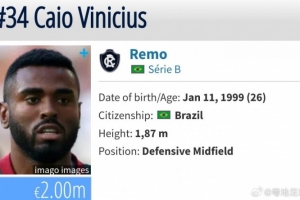 根据德转显示,球员在场上司职后腰,上赛季共出战了28场巴乙联赛,打进5球助攻2次,目前德转身价为200万欧。