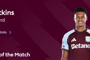 本场比赛沃特金斯梅开二度,成为球队逆转最大功臣,赛后他也当选英超官方球迷票选全场最佳球员。