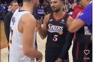 赛后,东契奇和前队友格莱姆斯寒暄几句。