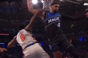 裁判吹罚了贝恩技术犯规,布伦森罚球之后球权给到魔术。