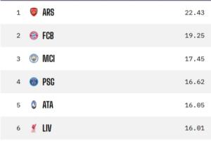 体育资讯12月11日讯 欧冠结束联赛阶段前6轮的争夺,数据机构Opta预测了欧冠联赛阶段的最终排名。