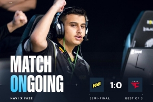 NAVI选图远古遗迹先攻,手枪局NAVI五人中路冲警厅转A,iM爆轰三杀无济于事,FaZe多点开花总监双杀刷屏NAVI,FaZe拿下手枪局。次回合NAVI半起一道封烟一波双杀进B下包扳平比分。随后FaZe枪械不全,小李子偷偷干拉进B下包后打掉总监,b1t跟上双杀jcobbb与寒王拿分,FaZe存钱让NAVI拿到第3分。