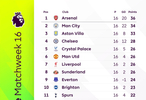 【英超积分榜】 #英超# 2025-26赛季英超联赛第16轮积分榜。