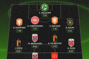 whoscored世欧预最佳阵:范戴克、哈兰德领衔,厄德高、丁丁在列