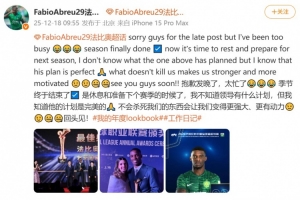 法比奥在个人社媒写道:抱歉发晚了,太忙了😂😂😂赛季终于结束了☑️是休息和准备下个赛季的时候了,我不知道领导有什么计划,但我知道他的计划是完美的🙏不会杀死我们的东西会让我们变得更强大、更有动力😉😉🤐🤐回头见!