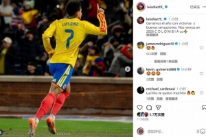 迪亚斯社媒晒出庆祝进球的照片,配文:“我们以胜利和美妙的感觉为2025年收官,2026年见,哥伦比亚球迷们!”