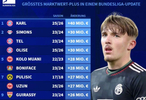 德转于12月19日对德甲球员身价进行了更新。