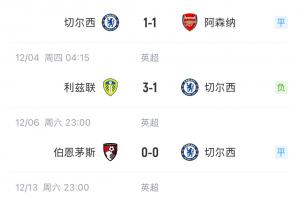 本场过后,切尔西5轮仅1胜积29分 落后榜首7分,身后4队26分。