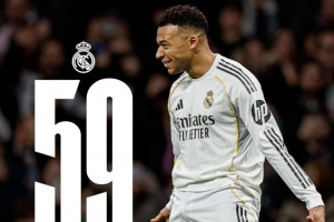 皇马官方更新社媒动态,晒出海报祝贺姆巴佩,配文:“姆巴佩追平了C罗自然年打进59球的纪录!”