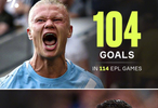 曼城前锋哈兰德在对西汉姆的比赛中梅开二度,英超进球数达到104球,超越C罗(103球)。