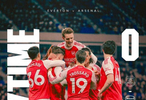由于曼城当日率先在主场以3:0击败西汉姆联队,积分一度超越阿森纳。“枪手”唯有战胜埃弗顿,才能重新确立积分领先的优势。比赛开始后,面对“太妃糖”强硬的防守,阿森纳难有作为。第27分钟时,埃弗顿球员奥布莱恩被判门前防守时手球犯规,阿森纳获得点球机会。哲凯赖什大力施射命中。