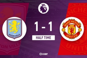体育资讯12月22日讯 北京时间12月22日凌晨0时30分,2025-26赛季英超第17轮在维拉公园球场展开角逐,曼联客场对阵阿斯顿维拉。上半场舍什科两失良机,罗杰斯精彩兜射打破僵局,库尼亚闪电扳平,多尔古抢断助攻,曼联客场暂时1-1战平维拉。