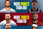 他的得分比爱德华兹高、三分进的比杜兰特多、罚球命中率高过亚历山大、投篮命中率高过库里!