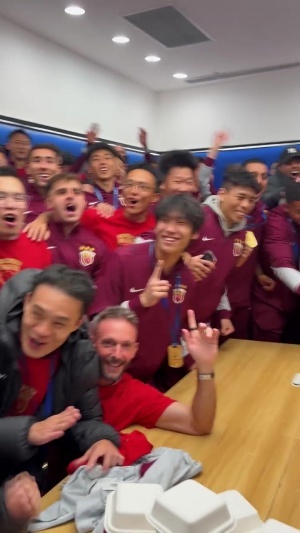 体育资讯11月22日讯 海港记者刘闻超发布视频,在夺得2025赛季中超冠军后,上海海港全队在更衣室欢庆夺冠。