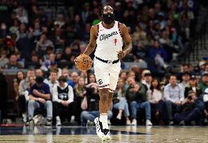 全场比赛,快船球星哈登出战35分钟,26中17,三分16中10得到55分3板7助攻1抢断。