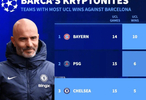 #切尔西3比0巴塞罗那# 德转在赛后更新了欧冠联赛(即1992改制后的欧冠)中击败巴塞罗那球队的次数排行榜。