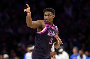 森林狼主将爱德华兹在对面唐斯表现出色的情况下,在进攻端强势回应,帮助球队保持领先。