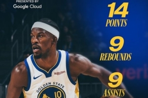 赛后勇士发布最佳球员数据海报,巴特勒当选。