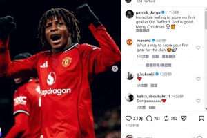 多尔古社媒晒出庆祝进球的照片,配文:“在老特拉福德打入首球的感觉不可思议。上帝眷顾,圣诞快乐。”