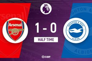 半场结束,阿森纳暂1-0布莱顿。