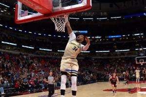 体育资讯12月29日讯 昨日NBA常规赛,公牛103-112不敌雄鹿。比赛垃圾时间,字母哥秀了个大风车暴扣,惹恼武切维奇,波蒂斯火上浇油引发多人冲突。