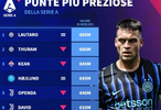 北京时间12月29日,德转列出目前意甲身价最高的10名中锋,劳塔罗以8500万欧元高居第一,马库斯-图拉姆6000万欧元第二,莫伊塞-基恩和霍伊伦同以4500万欧元并列第三。