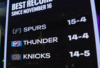 马刺主场迎战骑士,转播方晒出近一个半月(11月16日至今)的战绩排名: