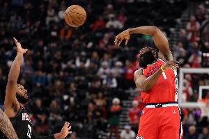GIF-哈登一顿炒菜后助攻科林斯三分飚中