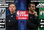 北京时间1月3日讯 NBA官方宣布,马刺队主教练米奇·约翰逊当选2025年12月西部月度最佳教练,凯尔特人队主帅乔·马祖拉则荣膺东部月度最佳教练。