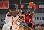1月4日,山西队球员迪亚洛(红)在比赛中上篮。当日,在山西太原进行的2025-2026赛季中国男子篮球职业联赛(CBA)常规赛第10轮比赛中,山西汾酒队主场以91比77战胜江苏肯帝亚队。 中新社记者 韦亮 摄