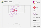 据Opta数据统计,自2025年1月起截至目前,在“各项赛事”范围内,皇马前锋维尼修斯在西甲球员中出现了最明显的“进球数低于预期进球(xG)”现象:他一共打进他一共打进13球,但对应的预期进球(xG)为20.2。两者差值达到-7.2,为西甲球员最差。