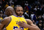 比赛结束后,詹姆斯与鹈鹕前锋特雷墨菲拥抱致意,今天墨菲得到生涯新高42分。26投14中,三分17中6,罚球9中8。