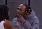 镜头显示,两个人都在喋喋不休,而且都手指对方。见此情景,广东队和深圳队的球员也是忙着拉开两人,避免冲突升级。