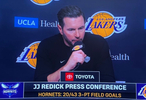 JJ·雷迪克谈到对阵状态火热的球队时表示:“他们(黄蜂)是一支进攻出色的队伍,曾在对阵爵士时砍下150分,也在客场大胜雷霆。我们的教练组和更衣室里的球员都清楚,赛前我们给予了他们充分的重视和关注。但结果证明,这又是另一支在对阵我们时迎来爆发之夜的球队。”