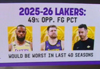 而49%也是湖人队史过去40年来在“对手命中率”这方面的最差表现。