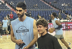 赛前,灰熊内线阿尔达马和梅奔F1车手安东内利两人交换了球衣。