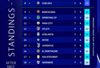 欧冠联赛第7轮赛事全部战罢,仅剩最后一轮的情况下,欧冠积分榜直通16强的前八席位中,英超球队强势占据五席!