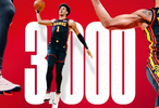 杰伦·约翰逊常规赛生涯总得分突破3000大关。