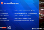 天空体育:阿森纳锋线近期遭遇进球荒📉#阿森纳2比3曼联#